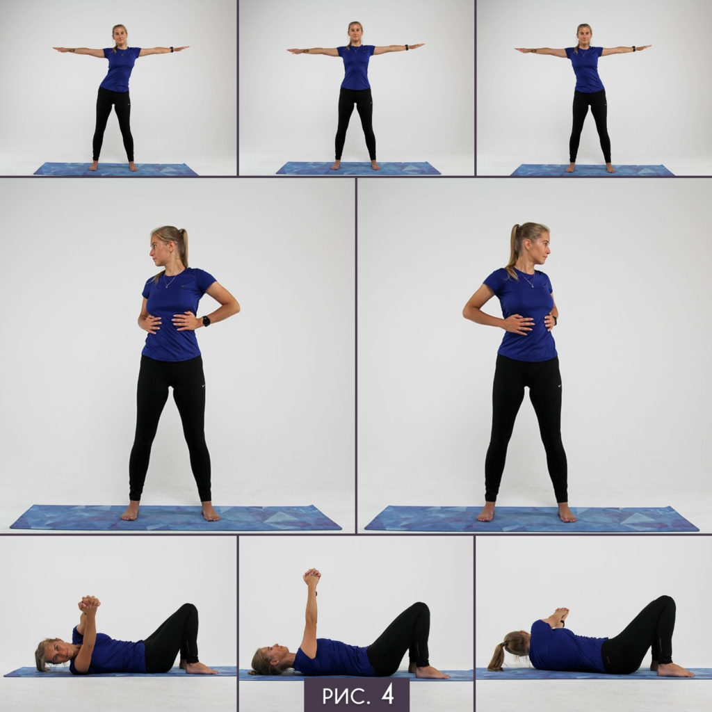 - Расталкивания нижними рёбрами в стороны (нижняя треть живота подтянута, таз фиксирован). 15-20 повторов в каждую сторону.