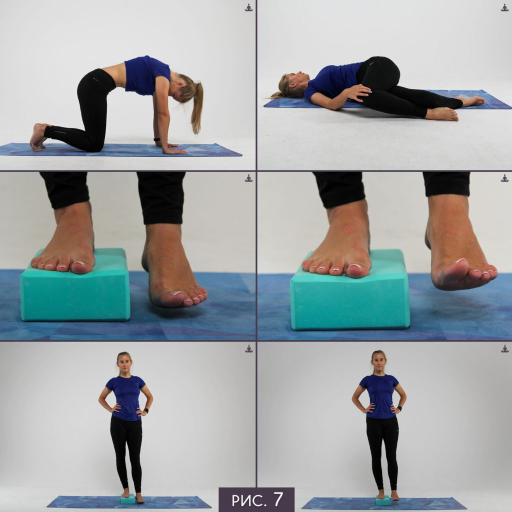 - Покачивание тазом стоя: встаньте одной ногой на кирпич, подтяните внутренний корсет и выполните движение вверх-вниз второй ногой, выполняя движение от таза, амплитуда небольшая, темп спокойный, дотянулись носком до пола - приподняли ногу тазом и так 20-40 раз каждой ногой.